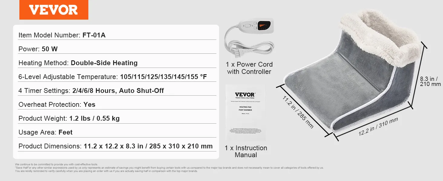 VEVOR electric foot heater not only warms cold feet but also alleviates arthritis and chronic muscle pain while promoting blood circulation. It provides cozy warmth and relaxation, making it an ideal gift to express warmth and care to your lover.