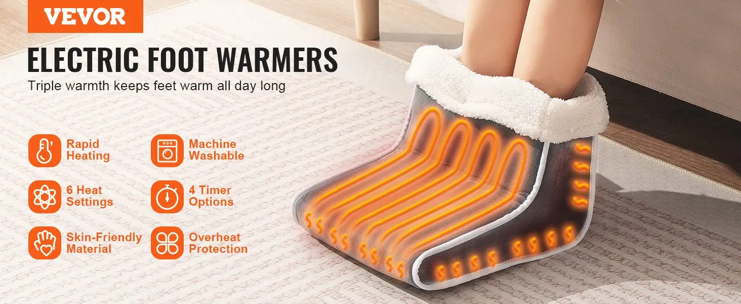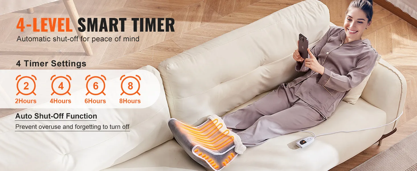 Do your feet and ankle frequently feel cold and stiff? VEVOR double-sided heating slippers heats up quickly, providing consistent warmth and cozy comfort. With 6-level temperature, 4-level timer, and auto shut-off, you can easily customize to your needs and enjoy warmth with peace of mind.