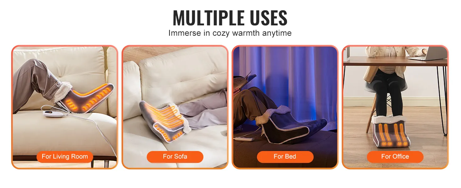 All-Round Heating: VEVOR double-sided heating foot warmer offers full coverage to warm and relieve foot & ankle pain. Featuring heating elements on both sides, it provides soothing warmth from top to bottom, ensuring feet are fully wrapped in gentle heat