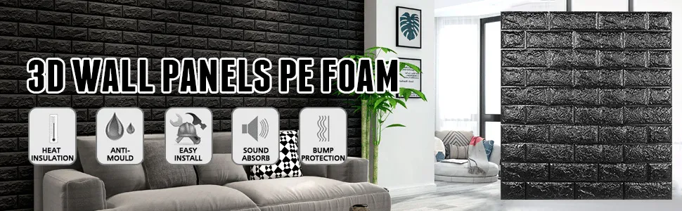 Deze wandpanelen zijn gemaakt van hoogwaardig PE-schuim en zijn zacht, hittebestendig en geluidsabsorberend. Baksteenachtige diepe 3D-textuur, behoorlijk modieus en modern.