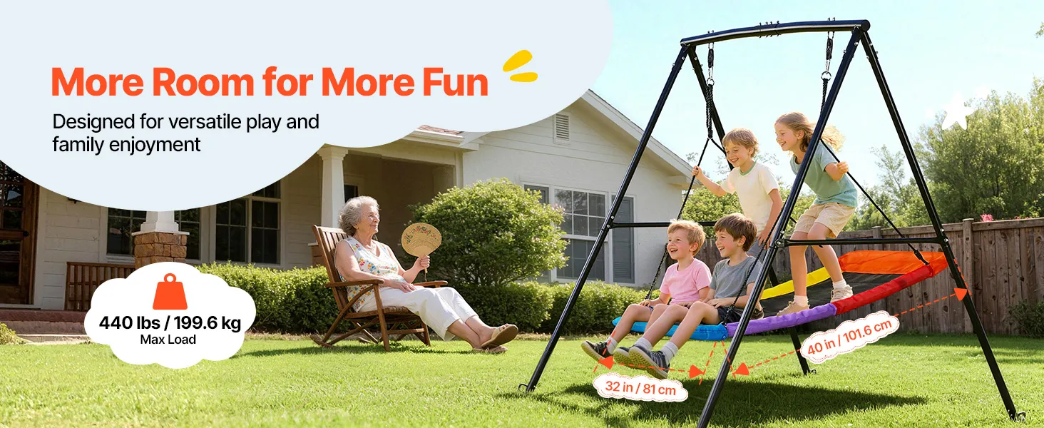 Ruime schommelzitting: Deze schommelset met frame heeft een vierkante schommelzitting (150 x 81 cm) en biedt voldoende ruimte om te zitten en te liggen. Het royale ontwerp verhoogt het speelcomfort en is ideaal voor buitenactiviteiten van kinderen.