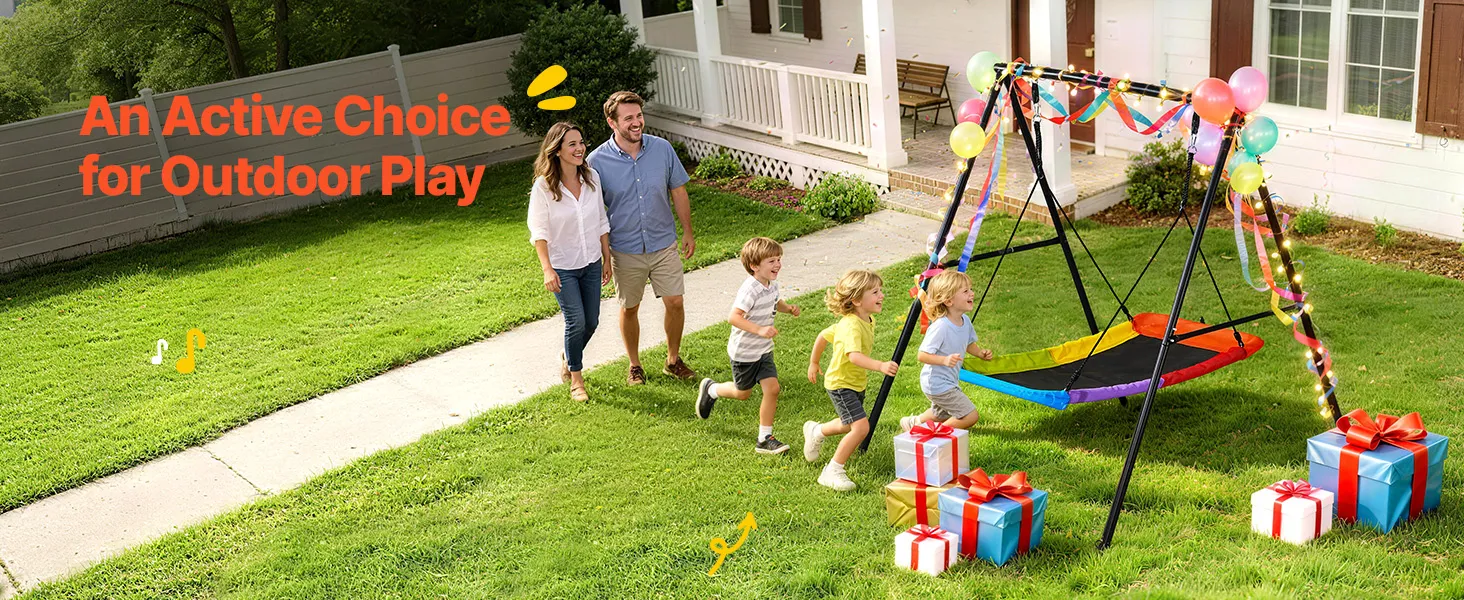 Deze schommelset voor buiten is ideaal voor verjaardagen, vakanties of weekendactiviteiten en biedt kinderen een gevarieerde manier om tijd buiten door te brengen in de tuin of andere buitenruimtes.