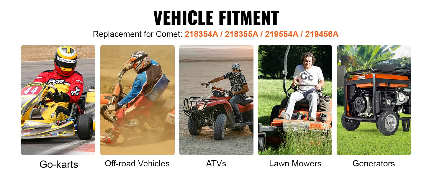 Compatibel met motoren van 2-8 pk: deze set is geschikt voor skelters, minifietsen, ATV's, UTV's, grasmaaiers, generatoren en meer. Opmerking: Zorg er vóór de installatie voor dat uw motor Amerikaans of metrisch is. De bijbehorende schroeven zijn niet bij de levering inbegrepen.