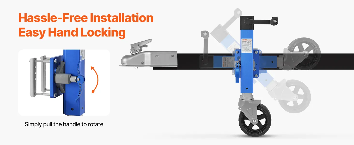 Eenvoudige installatie: onze boottrailerkrik wordt geleverd met alle benodigde onderdelen en gedetailleerde montage-instructies. Deze kan op de dissel van de aanhanger worden geschroefd. Bovendien draait en vouwt hij wanneer hij niet wordt gebruikt, zodat u zich geen zorgen hoeft te maken over de bodemvrijheid of hem onderweg hoeft te verwijderen.
