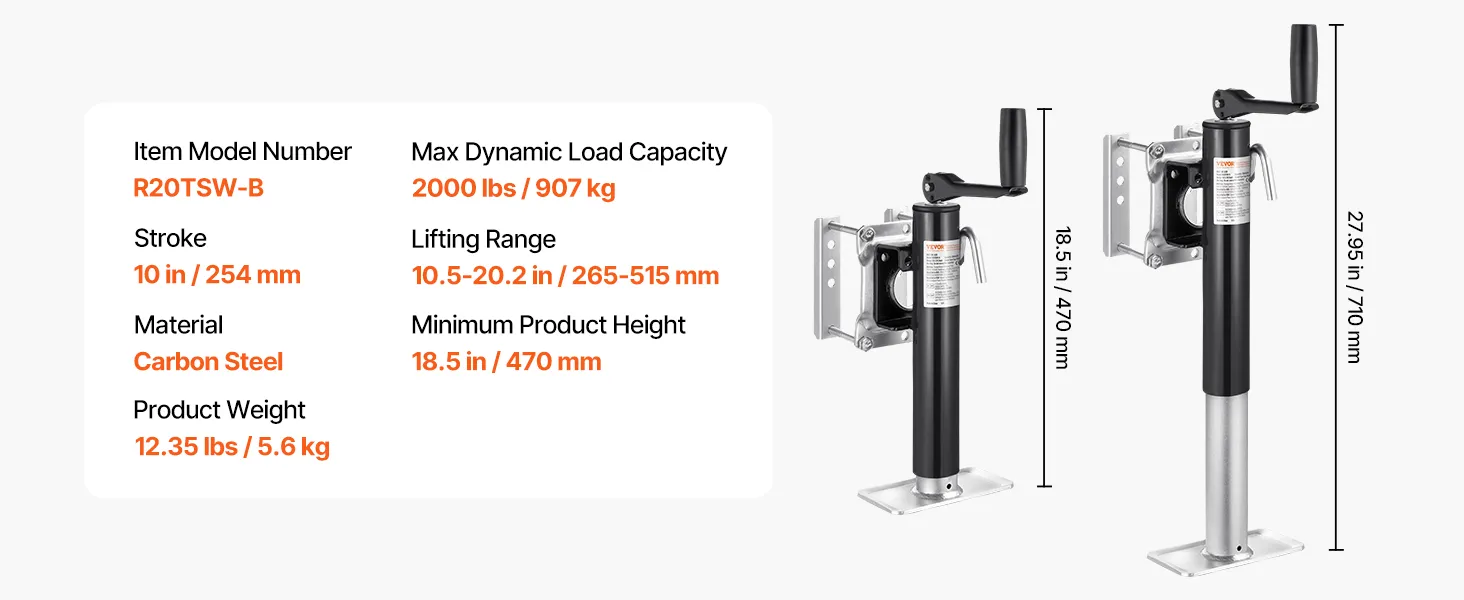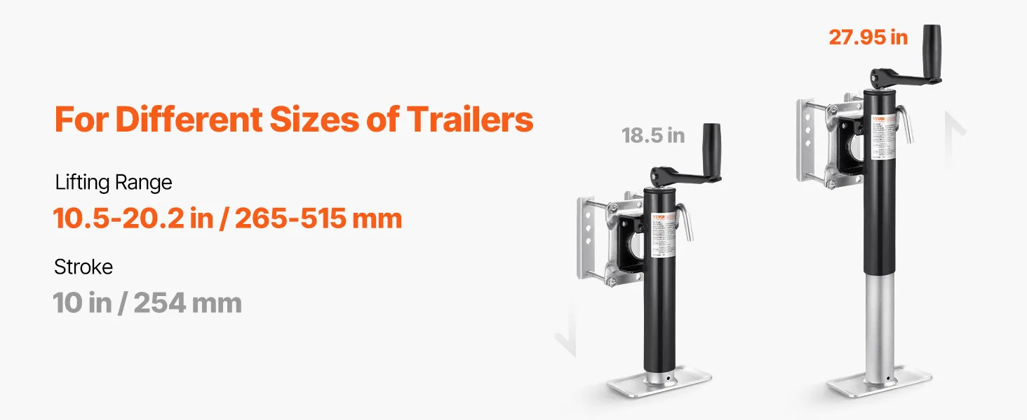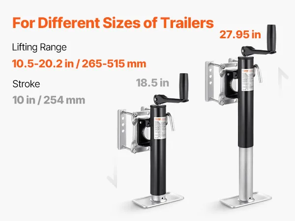 VEVOR Trailer Jack, 907 kg dynamisch draagvermogen, robuuste draaibare krikstandaard, 265-515 mm krikstandaard met handgreep voor caravantrailers, paardentrailers, aanhangwagens en jachttrailers