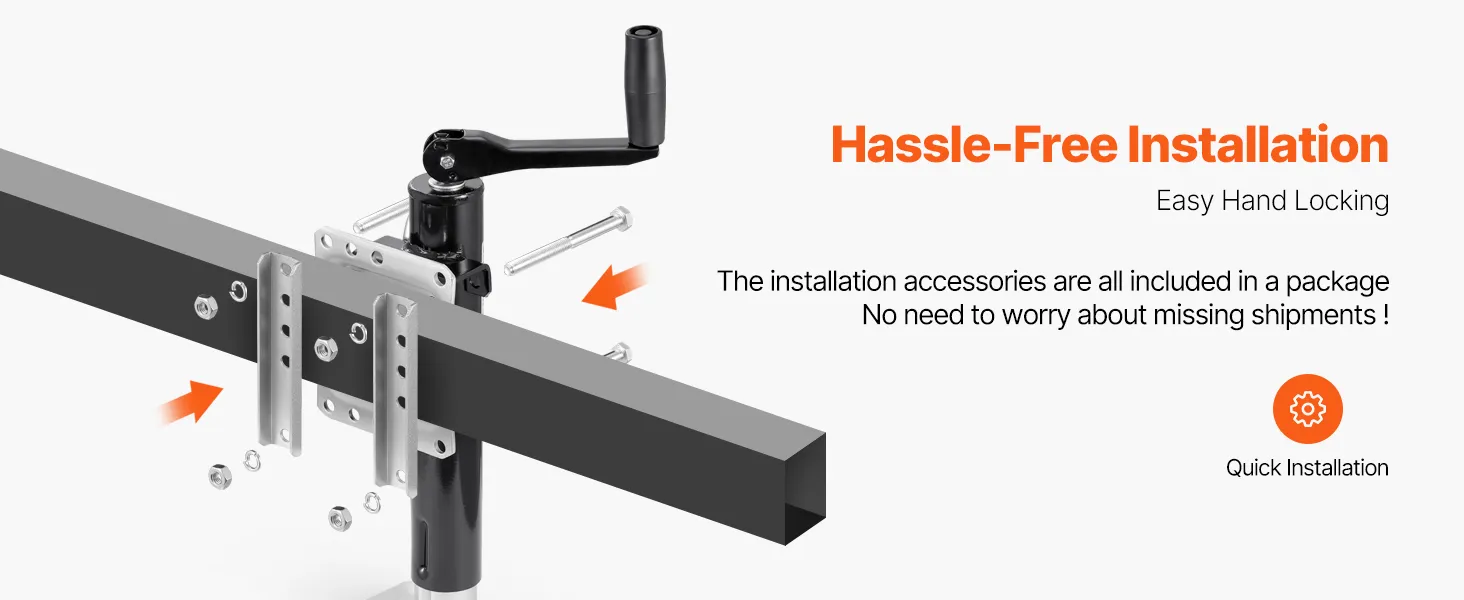 Flexibele compatibiliteit: onze universele aanhangerkrik is ontworpen met een groot hefbereik, geschikt voor alle soorten aanhangers, groot of klein, hoog of laag. Het is ontworpen voor flexibel gebruik in het dagelijks leven om uw leven gemakkelijker te maken.