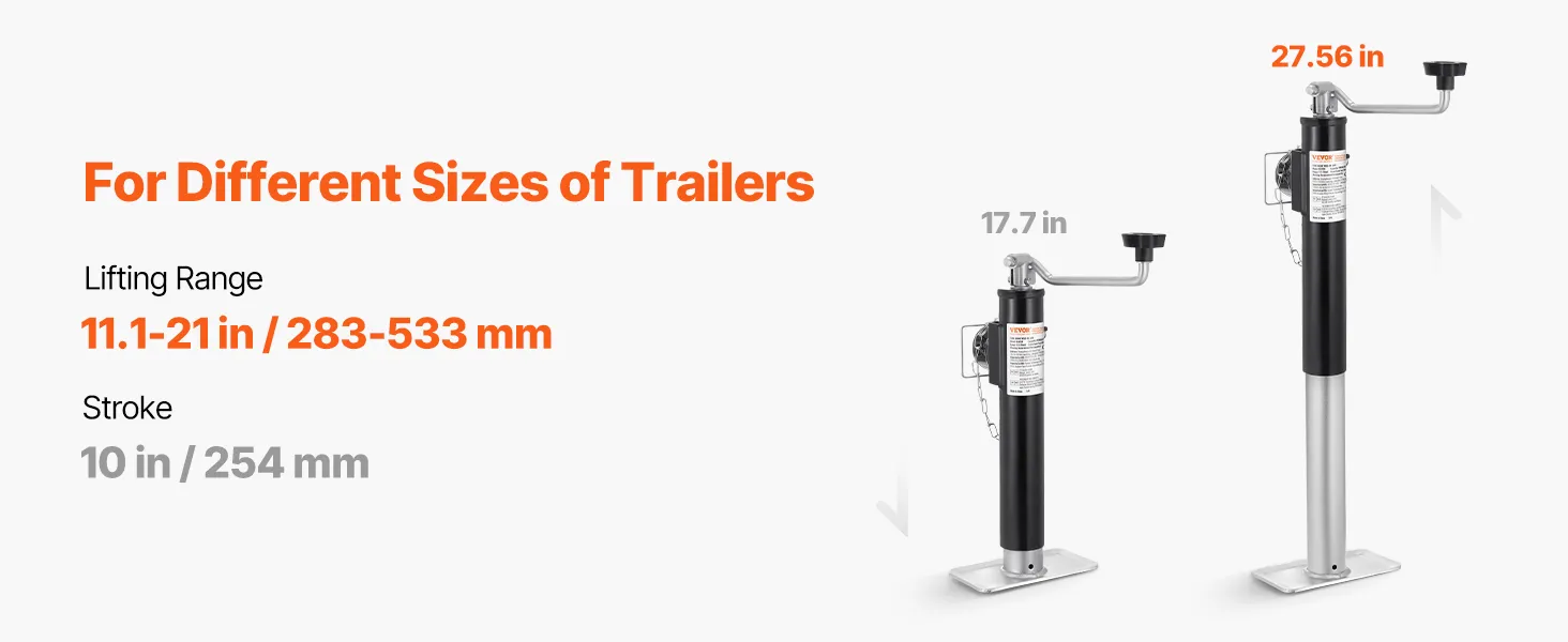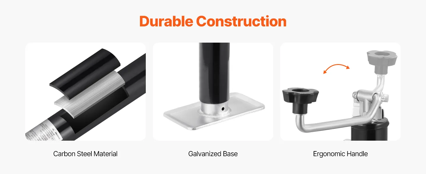 Flexibele compatibiliteit: onze universele aanhangerkrik is ontworpen met een groot hefbereik, geschikt voor alle soorten aanhangers, groot of klein, hoog of laag. Het is ontworpen voor flexibel gebruik in het dagelijks leven om uw leven gemakkelijker te maken.