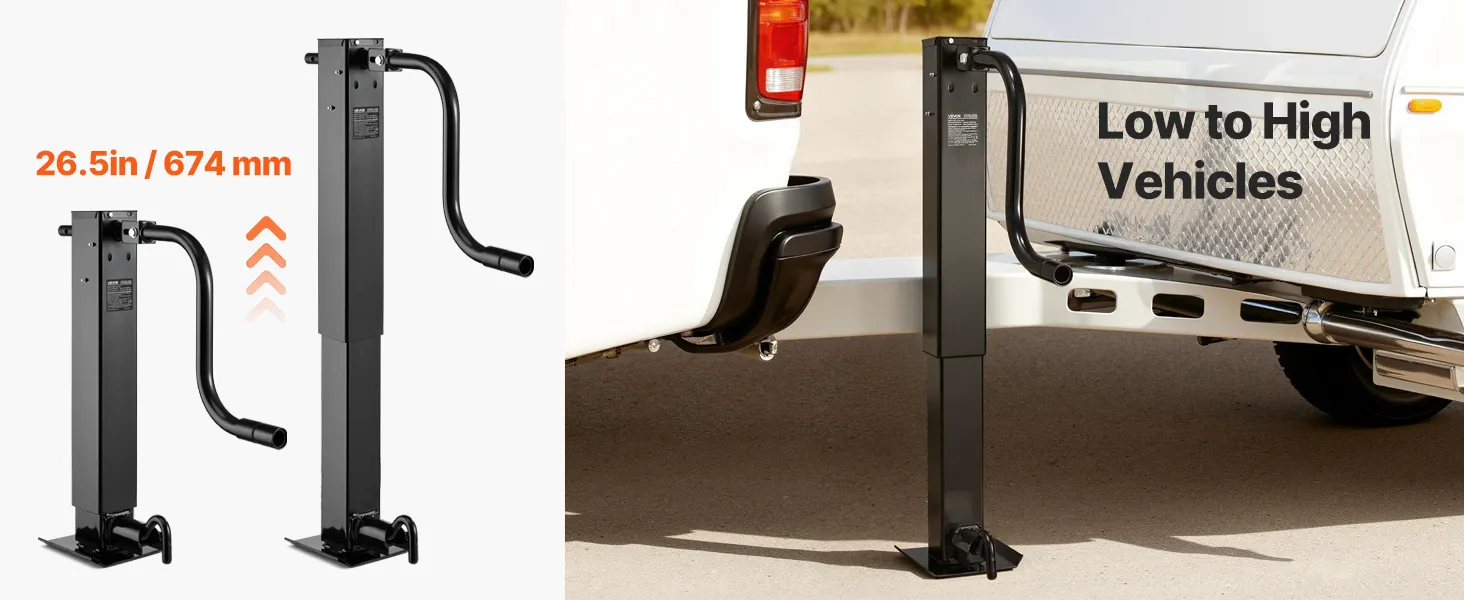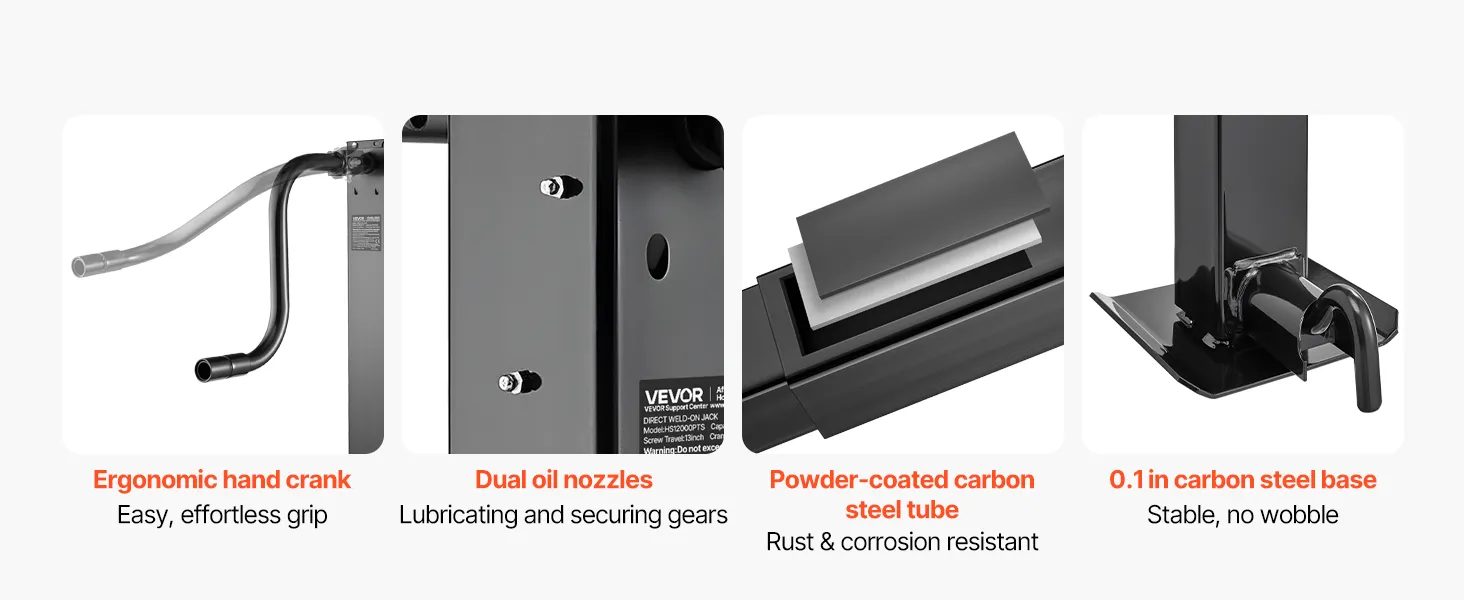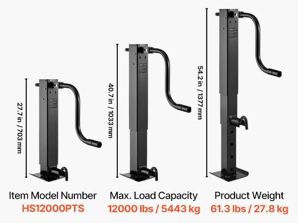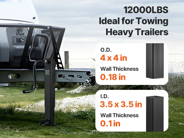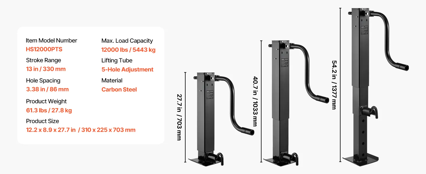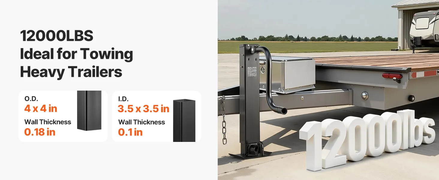 Met een draagvermogen van 5443 kg (12.000 lbs): Deze handmatige aanhangerkrik tilt en stabiliseert campers, boten en aanhangwagens tot 5443 kg (12.000 lbs) voor een veilige en stabiele koppeling.