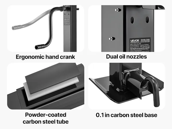 V: Kan deze krik echt 5443 kg dragen zonder door te buigen? A: Ja. De versterkte stalen buizen en de basis van koolstofstaal zijn ontworpen voor een draagvermogen van 5443 kg. De robuuste constructie is bestand tegen buigen en garandeert de stabiliteit en lange levensduur van de hefplatformen.