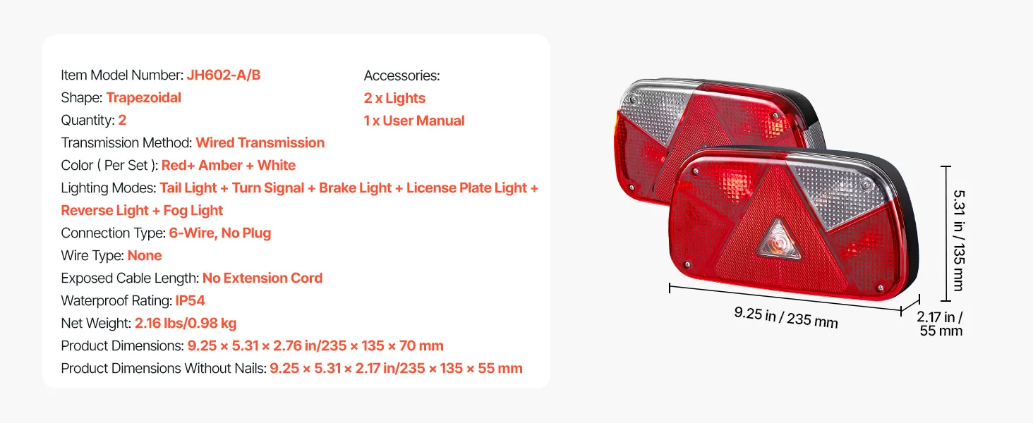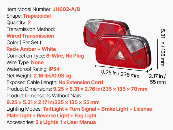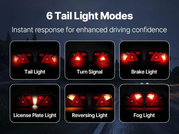 Deze aanhangerverlichting beschikt over meerdere lichtstanden om de rijintentie onder verschillende omstandigheden over te brengen. De hoge helderheid zorgt voor een helder zicht en de IP54-waterdichtheid garandeert stabiele prestaties bij slecht weer. Ze zijn eenvoudig te installeren en bieden bescherming voor aanhangers tijdens het rijden.