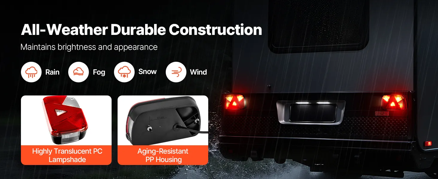 Goed zichtbare verlichting: Deze aanhangerverlichtingsset is voorzien van heldere lampen met doorschijnende PC-lenzen. Deze zorgen voor een helder zicht 's nachts en bij slecht weer. De duurzame PC-lenzen zijn slagvast en weerbestendig, wat zorgt voor meer veiligheid tijdens het rijden.