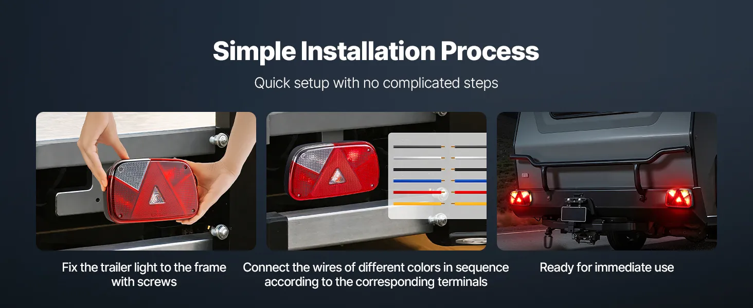 Deze waterdichte aanhangerverlichting is eenvoudig te installeren en vereist geen ingewikkelde handelingen. Zowel beginners als ervaren gebruikers kunnen ze snel installeren. Dit bespaart tijd en energie en zorgt ervoor dat u direct kunt genieten van een comfortabele rijervaring.