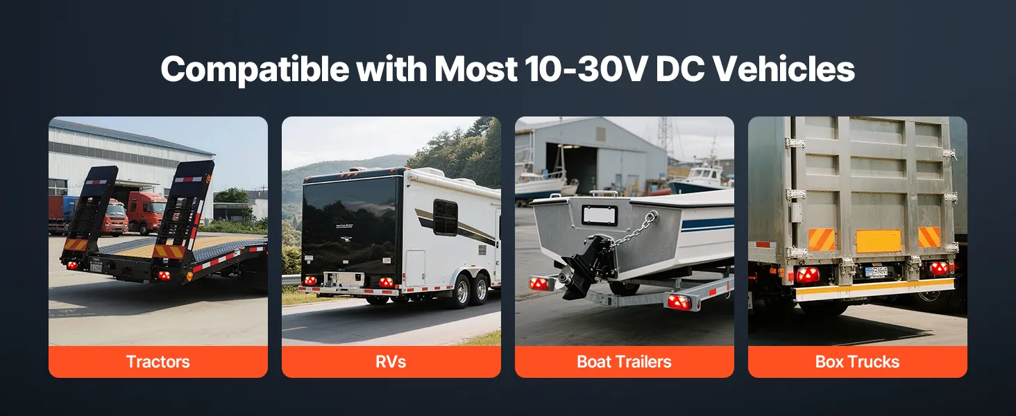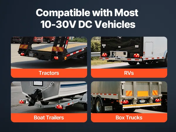 Deze veelzijdige aanhangerverlichting is geschikt voor diverse 12V DC-voertuigen, waaronder campers, boottrailers, aanhangwagens en bestelwagens. Ze zijn geschikt voor dagelijks gebruik en speciale situaties en zorgen voor betrouwbare voertuigverlichting en waarschuwingsfuncties.