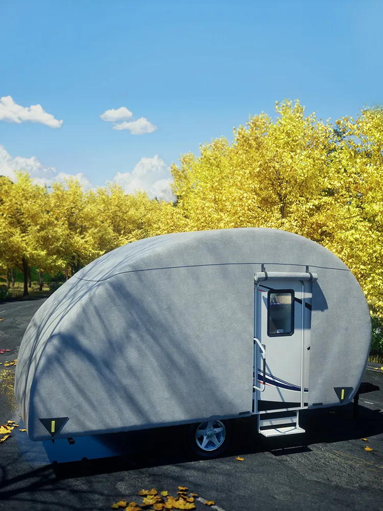 • Niet-geweven Stof: De bovenkant van de hoes van de reisaanhanger is gemaakt van extra dikke 4-laags niet-geweven stof, gemengd met zonwerend composiet en waterdicht membraan. Het kan ook voorkomen dat de trailer vogelpoep, stof en krassen krijgt, en heeft een goede luchtdoorlatendheid, blokkeert ultraviolette straling en verlengt de levensduur van uw trailer.