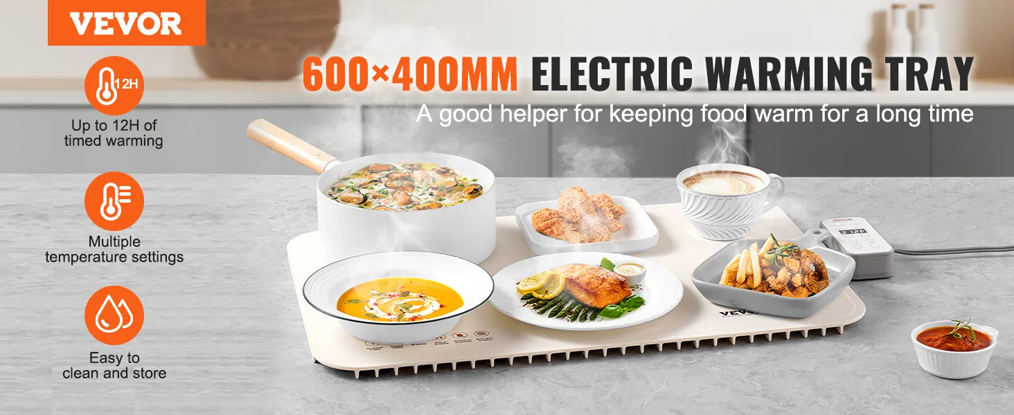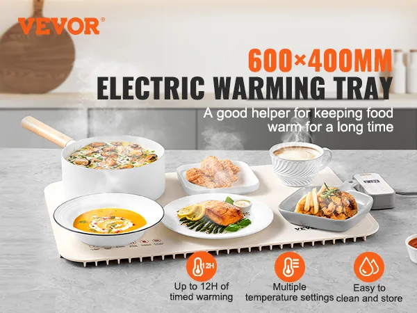 Wide Application: Suitable for a variety of high-temperature dishware, this warming tray is ideal for keeping food warm during parties, birthdays, Christmas, and buffets. Avoid using it on glass tables, and ensure that dishware has a flat bottom for quick and efficient heating.