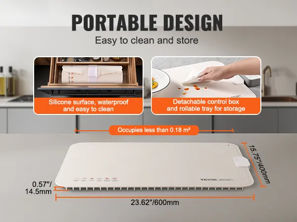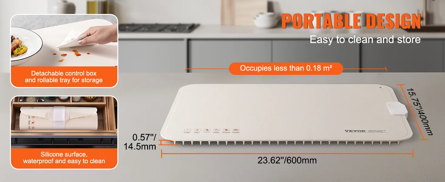 Easy to Clean and Store: Made from premium silicone material, the smooth, waterproof surface makes cleaning a breeze—just wipe away oil and food residue. The warming mat is flexible and can easily be rolled up for compact storage when not in use, saving space.