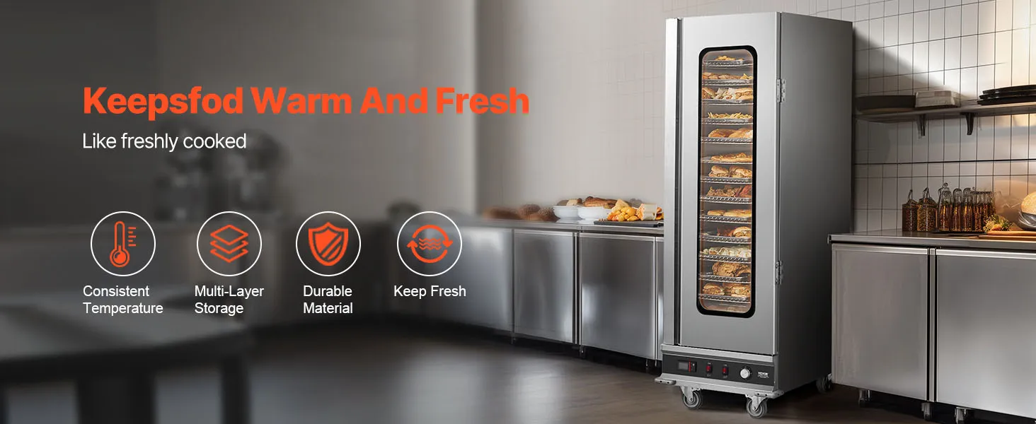 Our food warmer cabinet provides consistent temperature, keeping dishes warm and fresh without drying out, making your delicious food look like freshly cooked food.