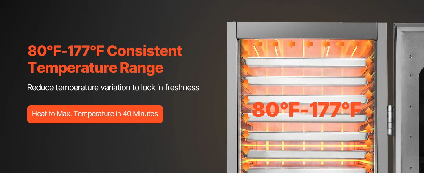 Temperature range of 80℉-177℉, allowing you to set different temperatures for various foods. Ensures optimal preservation while reducing temperature variation to lock in nutrition.