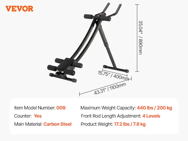 VEVOR AB Workout Machine, Ab Workout Equipment at Home Gym, Core & Abdominal Trainers for Women, 440 lbs Weight Capacity Strength Training Ab Cruncher, Foldable Adjustable Fitness Exerciser