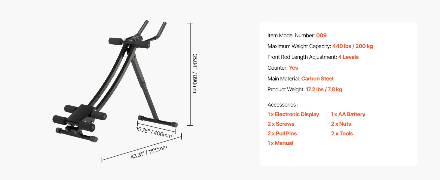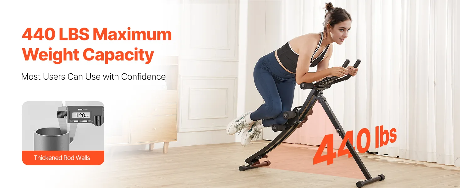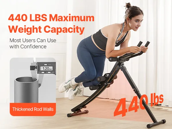 Safe and Stable Structure: Maximum Weight Capacity: 440 lbs / 200 kg. The stable triangular structure core & abdominal trainers is built with heavy-duty carbon steel. The thick soft knee pads and foam-covered handles to stabilize your posture, reducing knee friction, ensuring high durability and comfortable workouts.