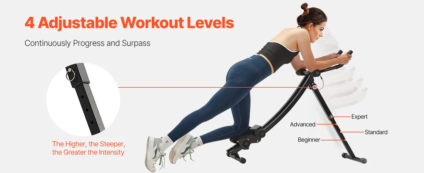 Adjustable Difficulty: With 4 height adjustments, this home gym strength training ab cruncher caters to both beginner and advanced training needs, continuously providing varying intensity for the abs while accommodating different heights and strength levels. The higher the setting, the greater the difficulty.