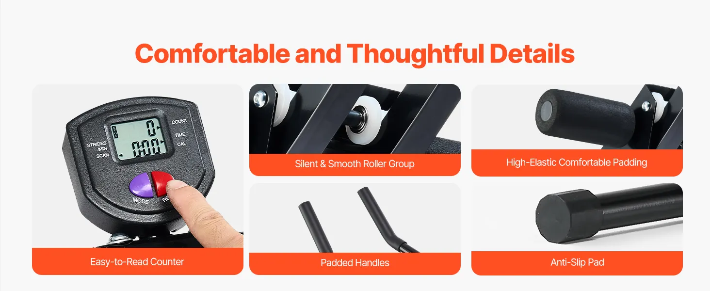 Focus Without Distractions: Thoughtful design ensures your workout isn't interrupted. The rollers beneath the knee pad are quiet and smooth. The foldable fitness equipment features an easy-to-read counter for conveniently tracking reps without mental counting.