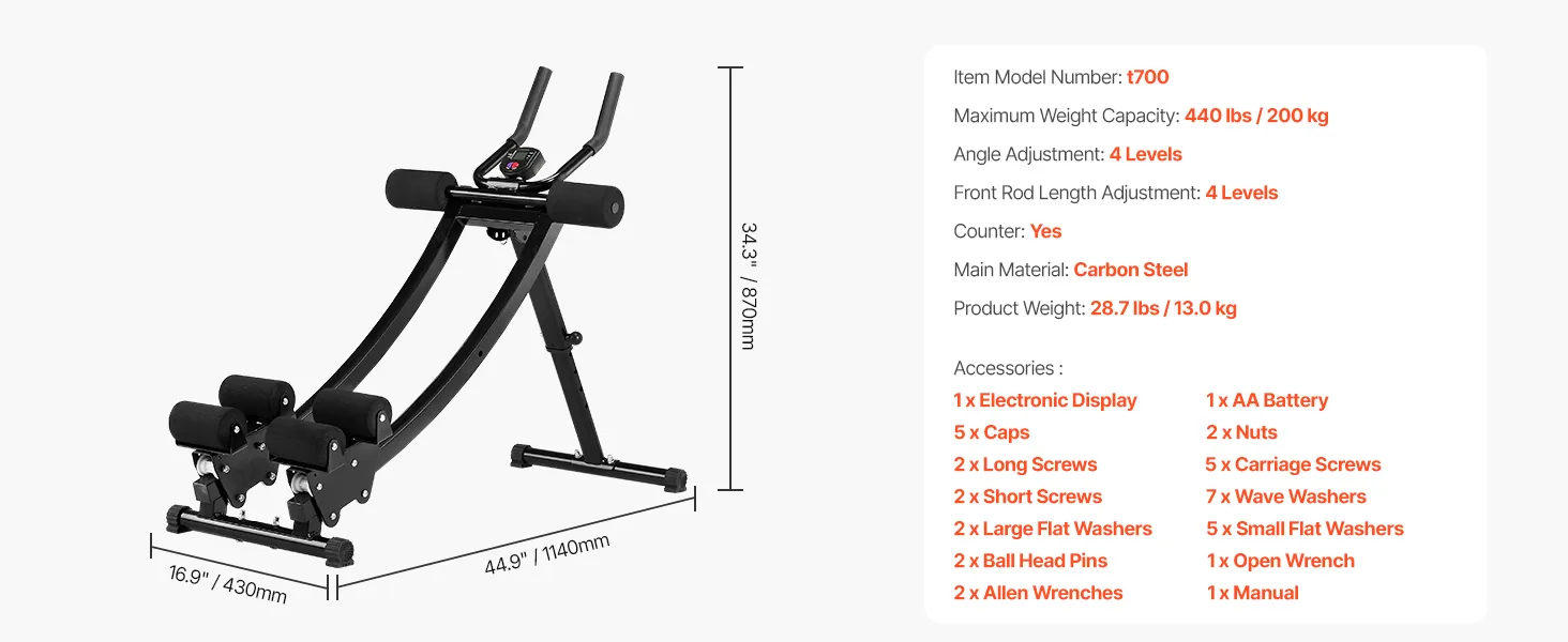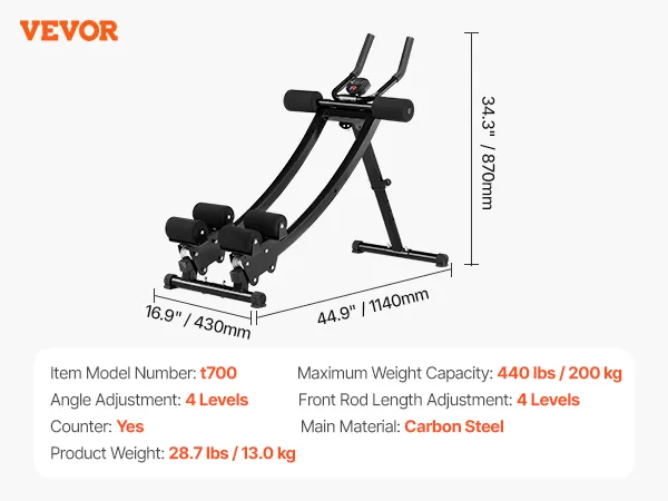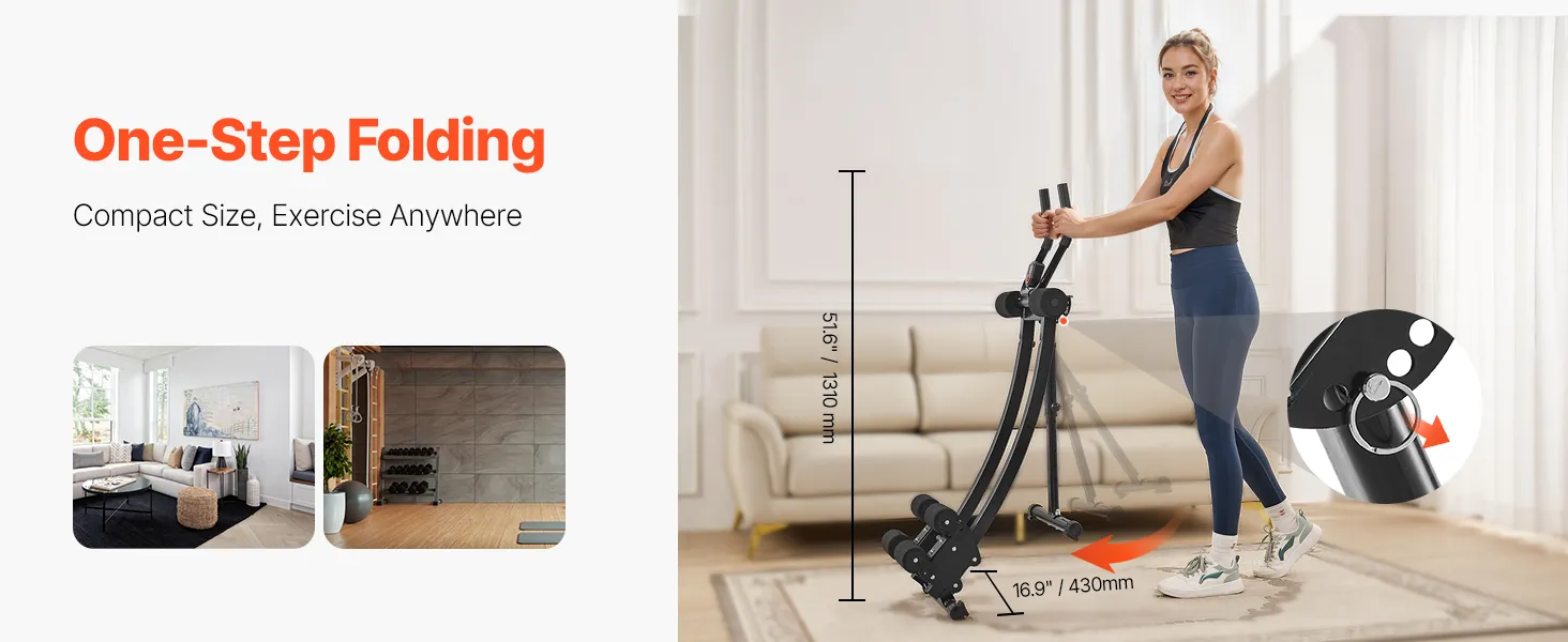 VEVOR AB Workout Machine, Dual-track Ab Workout Equipment at Home Gym, Core & Abdominal Trainers for Women, 440 lbs Weight Capacity Strength Training Ab Cruncher, Foldable Adjustable Fitness Exerciser