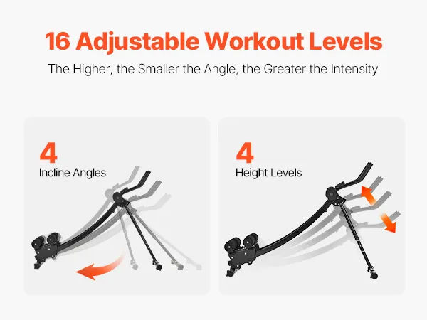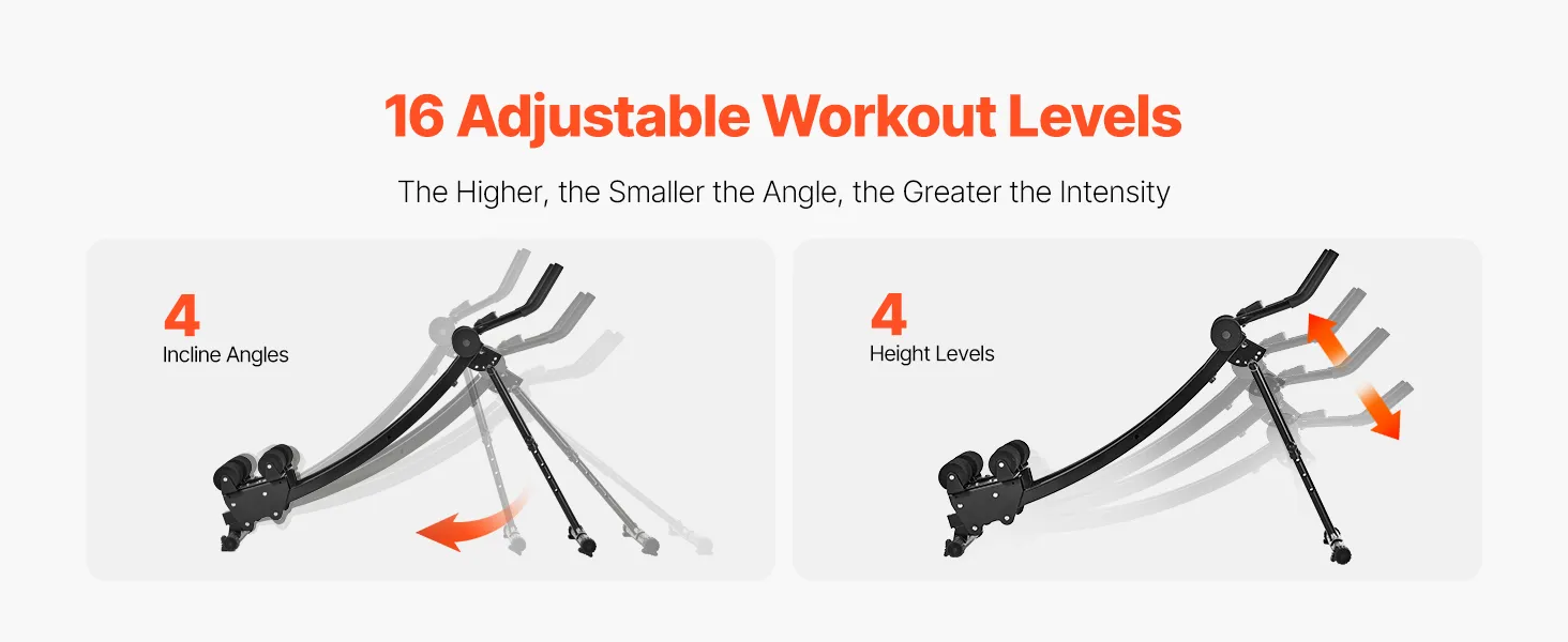 Adjustable Difficulty Levels: With 4 incline angles and 4 height settings, the home gym strength training ab cruncher offers a total of 16 difficulty levels, catering to both beginner and advanced training needs, continuously providing varying intensity for the abs while accommodating different heights and strength levels.