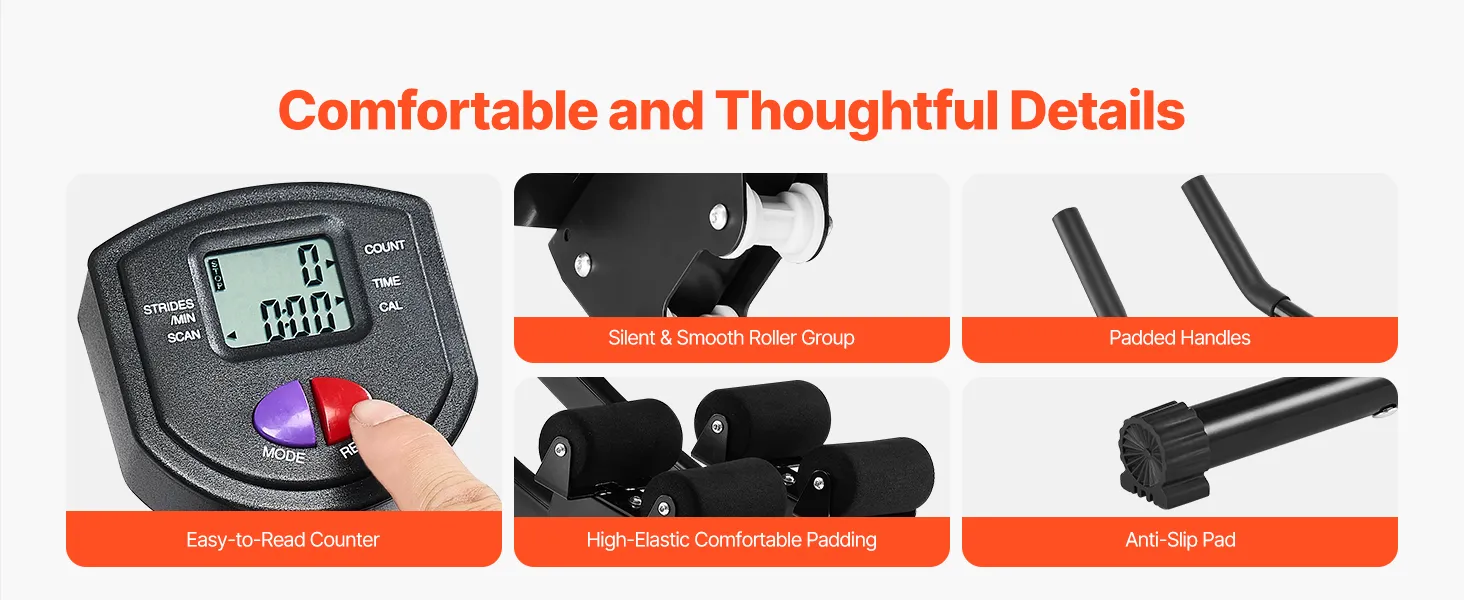 Focus Without Distractions: Thoughtful design ensures your workout isn't interrupted. The rollers beneath the knee pad are quiet and smooth. The foldable fitness equipment features an easy-to-read counter for conveniently tracking reps without mental counting.