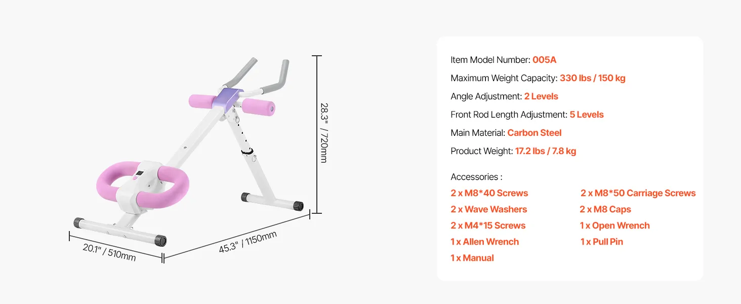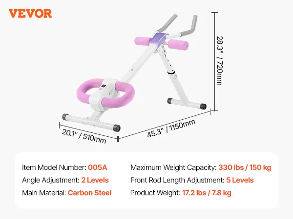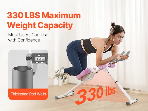 Safe and Stable Structure: Maximum Weight Capacity: 330 lbs / 150 kg. The stable triangular structure core & abdominal trainers is built with heavy-duty carbon steel. It features a fully enveloping U-shaped foam knee pad and padded handles, which reduce body movement and knee friction during exercise, ensuring high durability and comfortable workouts.