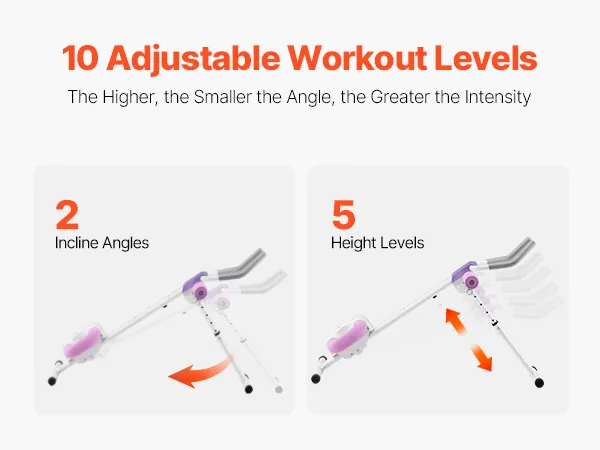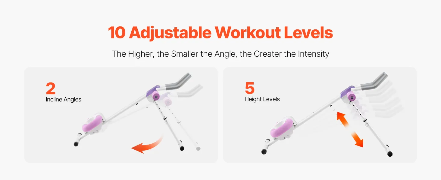 Adjustable Difficulty Levels: With 2 incline angles and 5 height settings, our home gym strength training ab cruncher offers a total of 10 difficulty levels, catering to the needs of both beginners and advanced training, continuously providing varying intensity for the abs while accommodating different heights and strength levels.