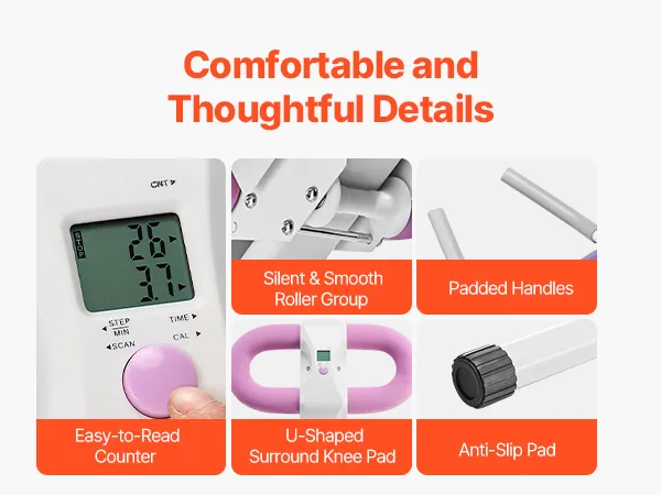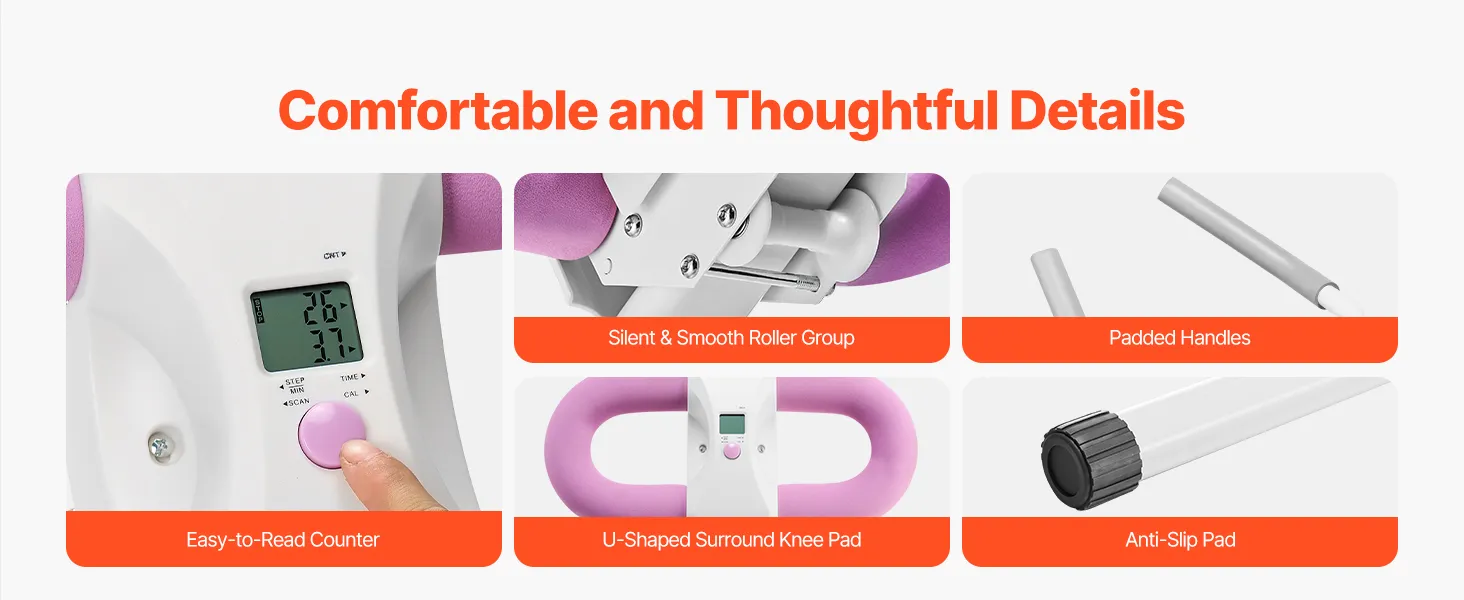 Focus Without Distractions: Thoughtful design ensures your workout isn't interrupted. The rollers beneath the knee pad are quiet and smooth. The foldable fitness equipment features an easy-to-read counter for conveniently tracking reps, timing, calorie counts, and frequency, allowing real-time progress tracking without mental counting.