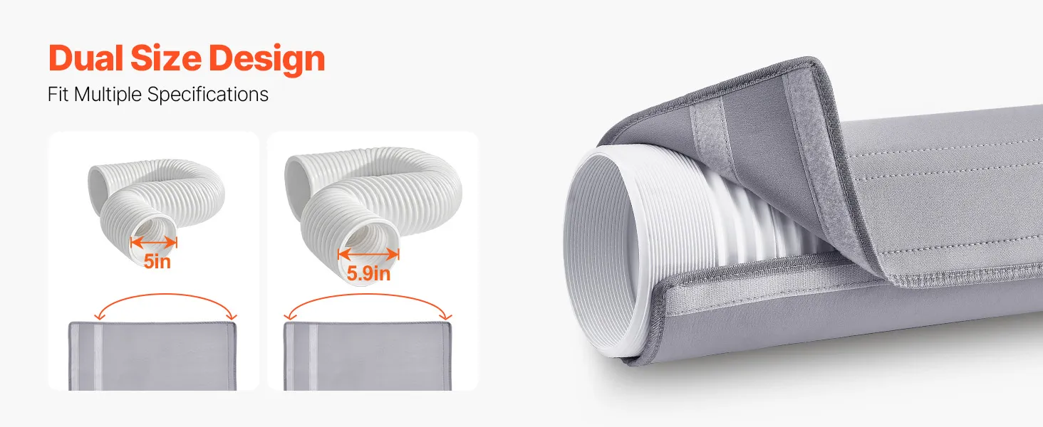 Dual Size Design: This air conditioner hose cover wrap fits 5 & 5.9" hoses, ensuring a snug, secure fit for various air conditioner models. It is suitable for both residential and commercial use.