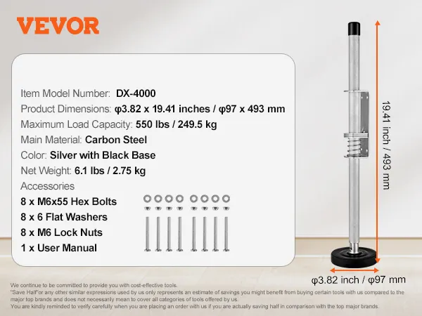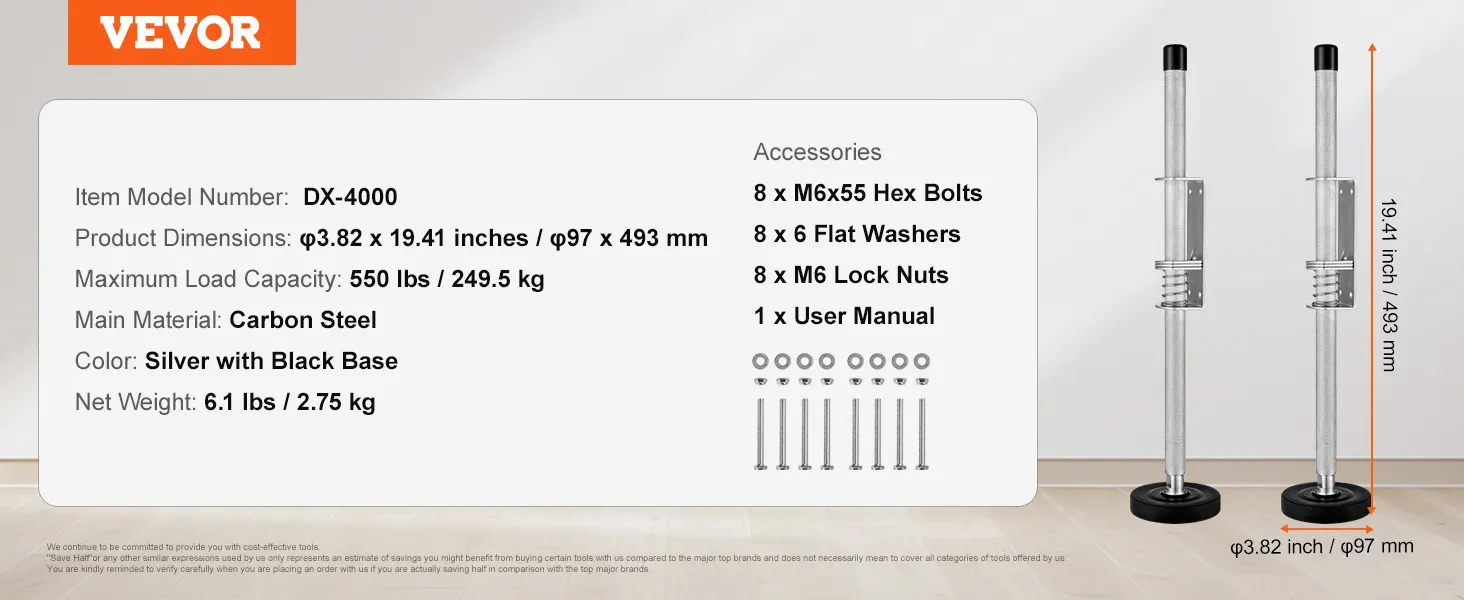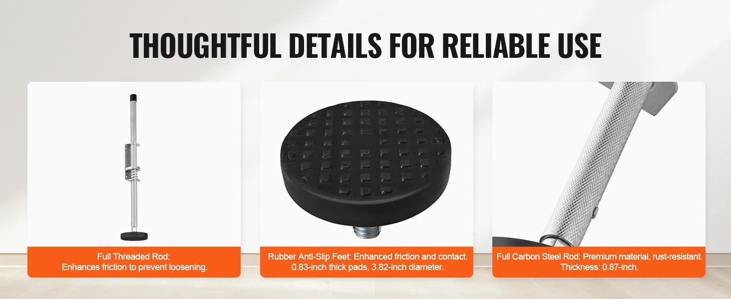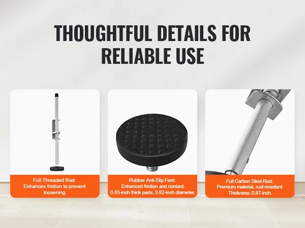 Anti-slip rubber feet enhance surface contact for stability. The full-threaded rod increases friction to prevent loosening. Made from high-quality carbon steel, it’s rust-resistant and durable, ensuring long-term reliability and safety.