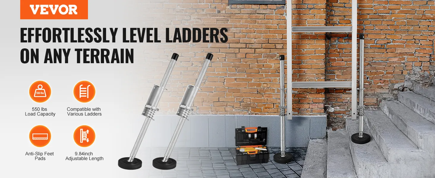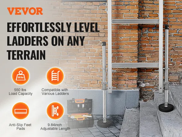 Effortlessly level your ladder on any terrain with this leveler. Supporting up to 550 lbs and compatible with various ladder types, it features anti-slip pads for secure stability. Tackle complex surfaces with confidence and ensure safety every time.