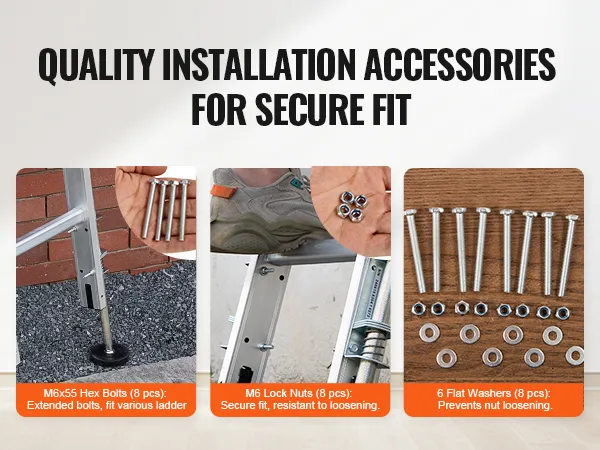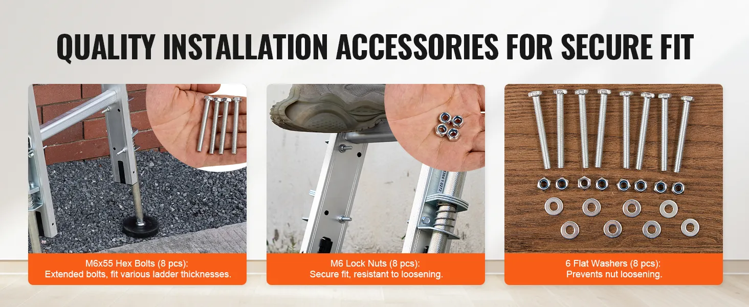 Quick Installation: Install in three easy steps—mark, drill, and fix. Fast and convenient for a balanced ladder and improved work efficiency.