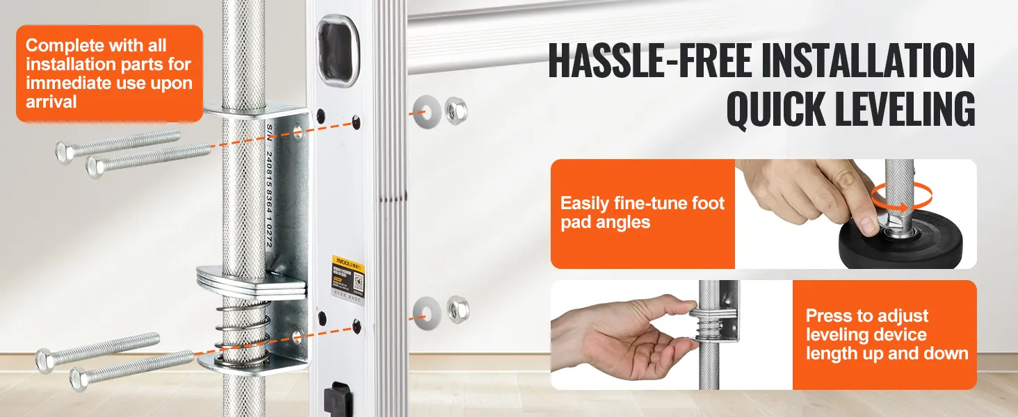 Simple Operation: Effortless leveling with an adjustable locking plate. Anti-slip rubber feet ensure stability and a perfect fit on various surfaces for increased safety and efficiency.