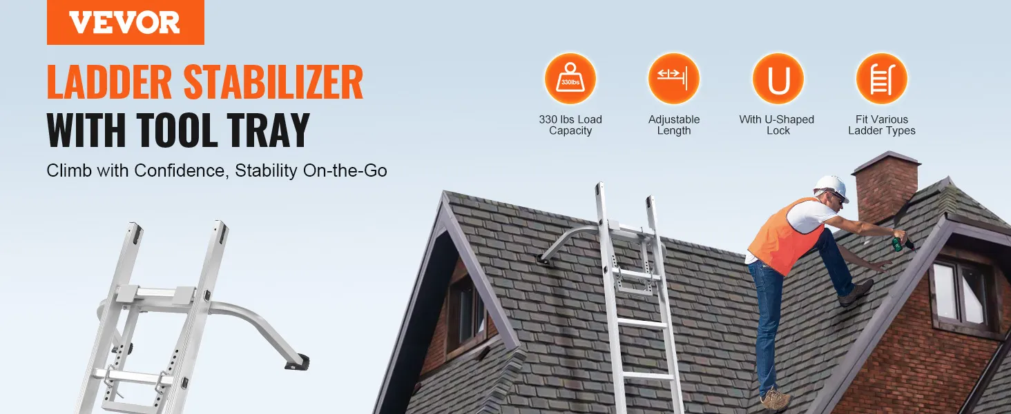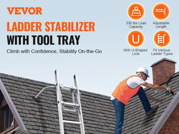 Onze ladderstabilisator is gemaakt van hoogwaardig koolstofstaal en zorgt voor stabiliteit en veiligheid! Met een draagvermogen van 150 kg kan het het gewicht van de meeste volwassenen dragen. Geschikt voor verschillende laddervormen en geschikt voor talloze scenario's.