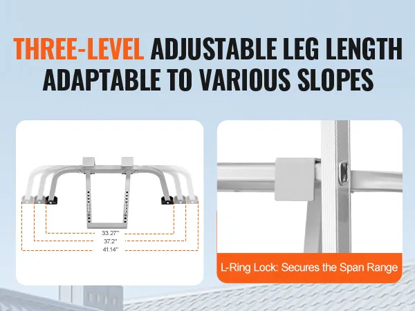 De beenlengte is in drie standen verstelbaar, zodat u de stoel aan verschillende hellingshoeken kunt aanpassen en zo een stevige grip hebt. Uitgerust met betrouwbare vergrendelingsclips, garandeert het veiligheid en flexibiliteit op elke hoogte en hoek.