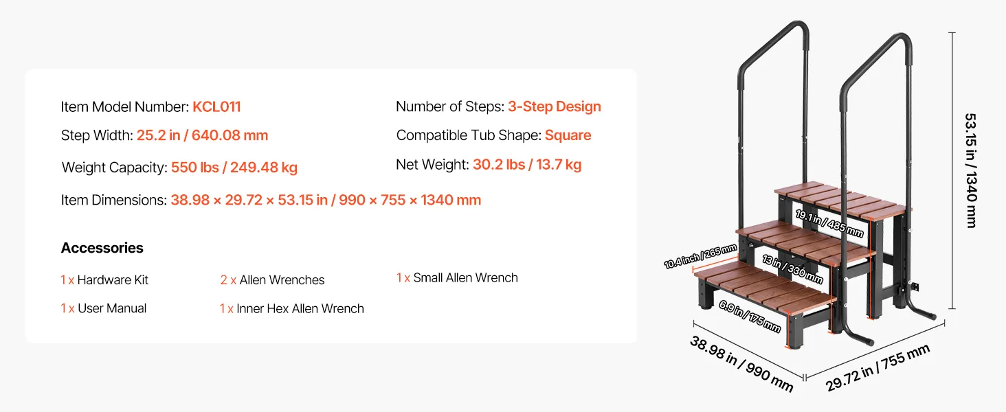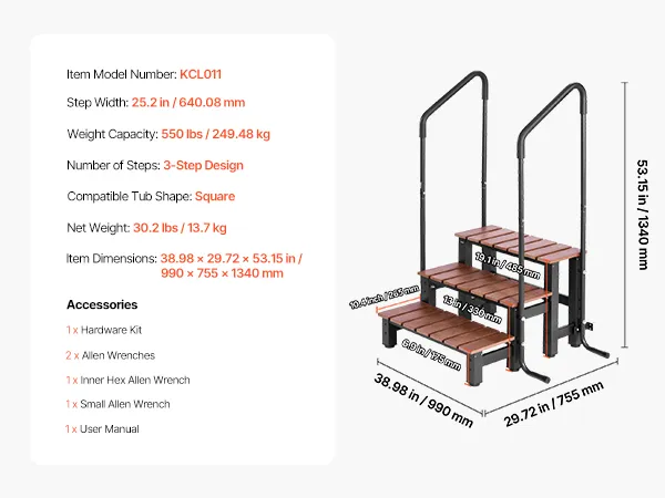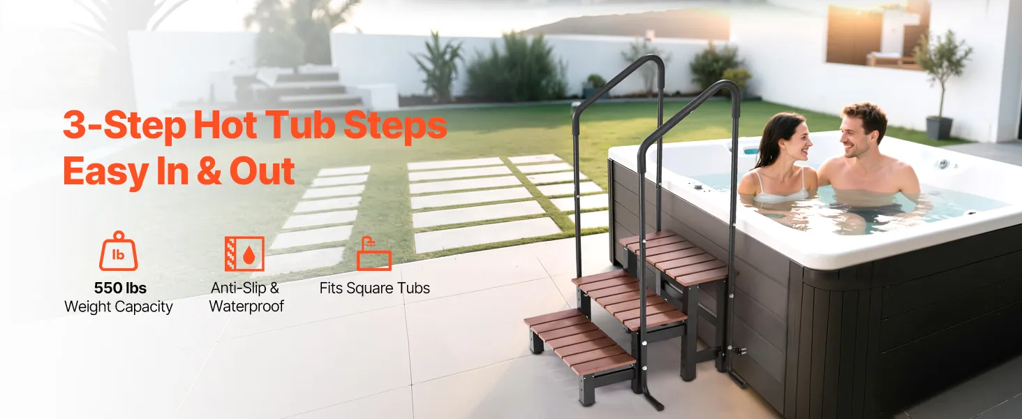 Geschikt voor vierkante massagebaden: Onze buitentrap is speciaal ontworpen voor aansluitende massagebaden met een afmeting van 990 x 755 x 1340 mm. Dit betekent dat de trap perfect past bij vierkante massagebaden en de instap vergemakkelijkt. Een perfecte pasvorm is gegarandeerd binnen enkele minuten.