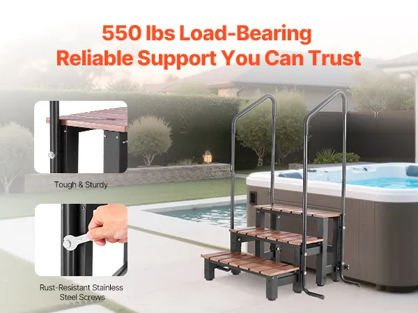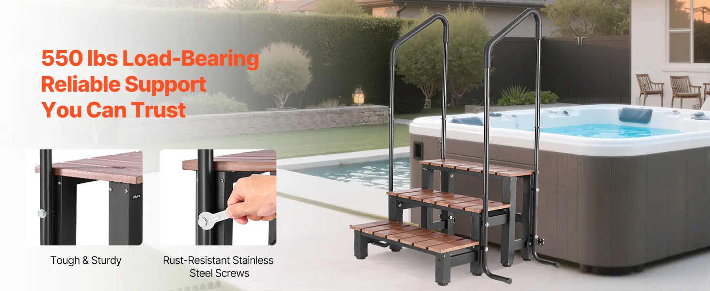 VEVOR Badkuiptrap Zwembadtrap 3-trede RV-trap, 640,08 mm brede buitentrap voor bovengrondse/opblaasbare zwembaden met een draagvermogen van 249,48 kg, veelzijdig voor veranda's en patio's