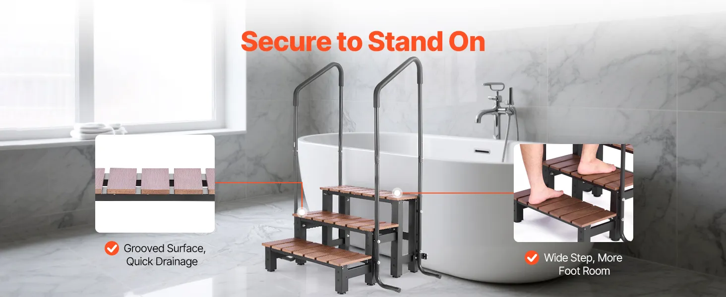 249,48 kg sterk draagvermogen: Deze badtrap biedt een rotsvaste stabiliteit tot 249,48 kg en is buig- en breukbestendig, zodat u veilig kunt staan. Stap vandaag nog met vertrouwen in.