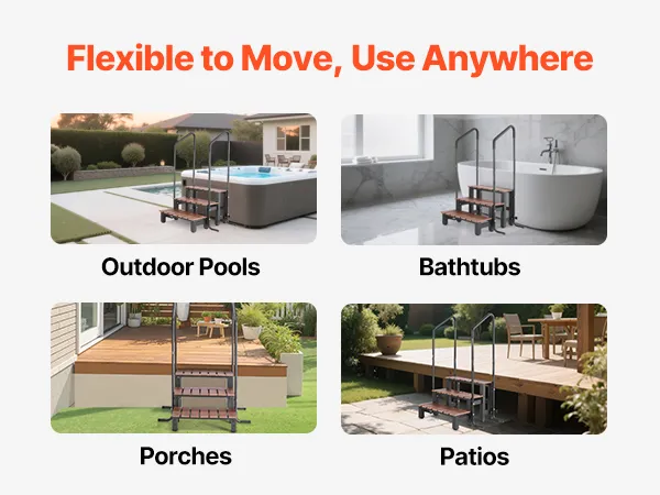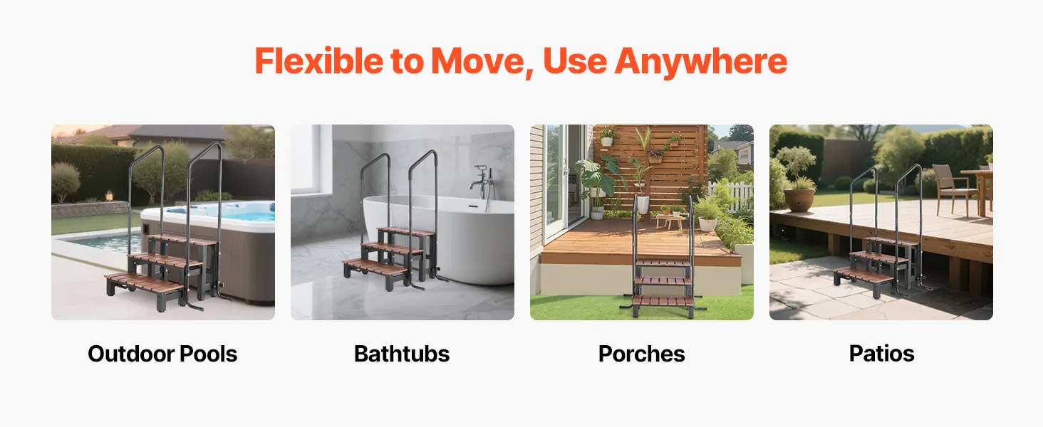 Veelzijdige plaatsing: Ideaal naast spa's, badkuipen, opzetzwembaden en opblaasbare zwembaden – uw zwembadtrap voor diverse toegangsbehoeften. Rust uw ruimte vandaag nog uit met een betrouwbare trap.