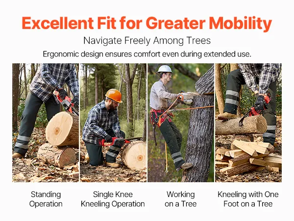 Lightweight materials contour to the body's shape, minimizing discomfort during prolonged use. The chainsaw chaps accommodate various movements, allowing for easy mobility.