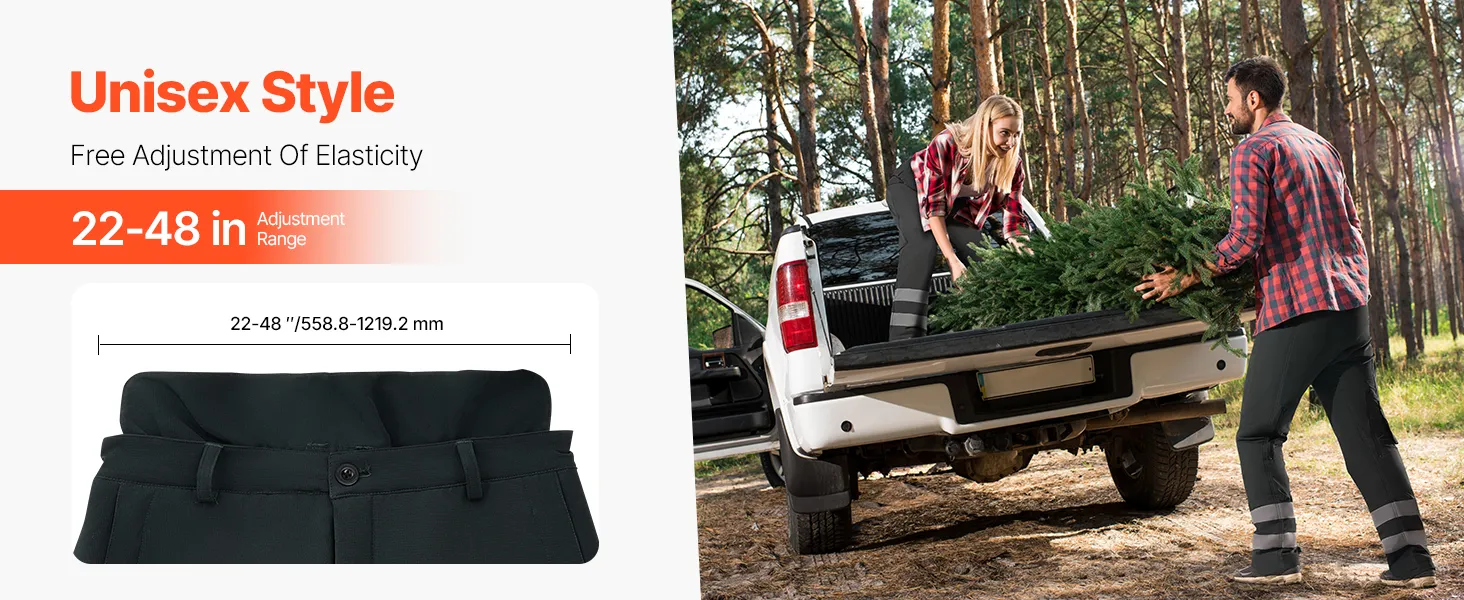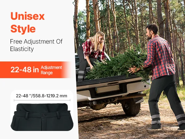 Conveniently designed for rapid wearing and removal when needed. The adjustable belt fits waist sizes from 22 to 48 inches, making it suitable for all body types, regardless of gender, whether you're wearing chainsaw pants.