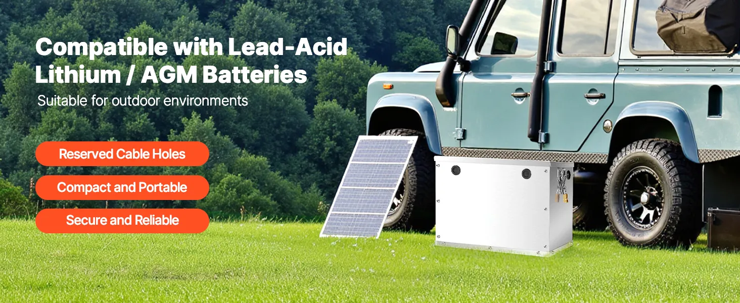 Deze accubox ondersteunt 12V/24V/36V loodzuur-, lithium- en AGM-accu's en is geschikt voor offroad-racewagens, custom trucks en SUV's. De aluminium behuizing garandeert duurzaamheid en biedt functies zoals multidirectionele bedrading, boutvergrendeling en twee handgrepen voor transport.