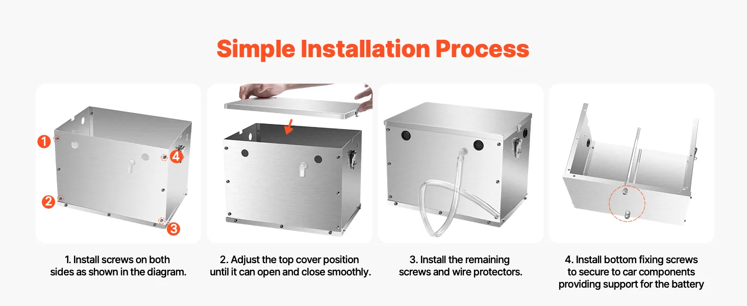 Onze elektromotor-accudoos kan in slechts een paar eenvoudige stappen snel worden geïnstalleerd om uw accu te beschermen.