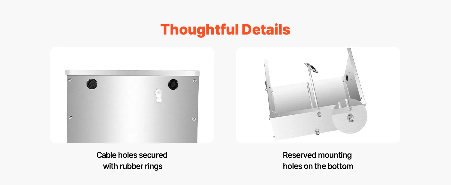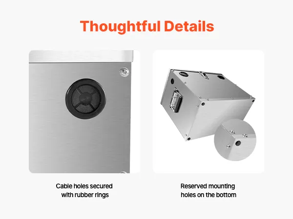 De batterijdoos van aluminiumlegering is voorzien van kabelgaten met rubberen ringen om de kabels beter vast te zetten en te beschermen.