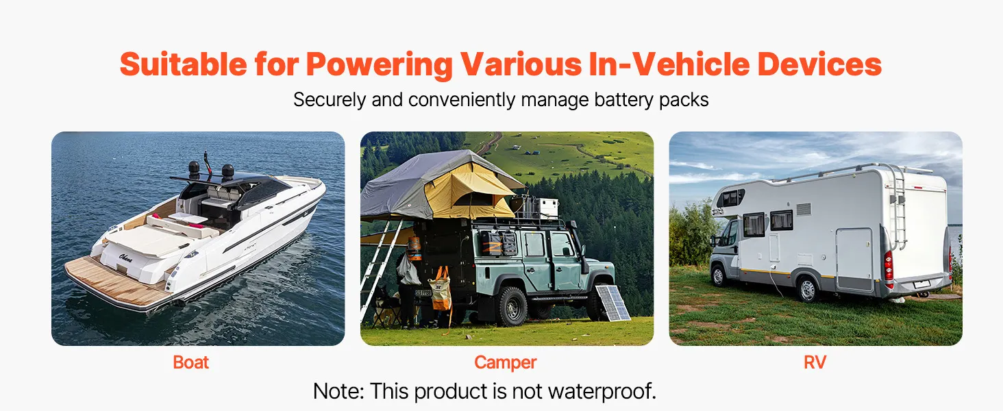 Groep 24/31 accu's: Deze accubox is compatibel met loodzuur-, lithium- en AGM-accu's. Hij ondersteunt 12V/24V/36V accu's en is geschikt voor offroad raceauto's, custom trucks en SUV's.