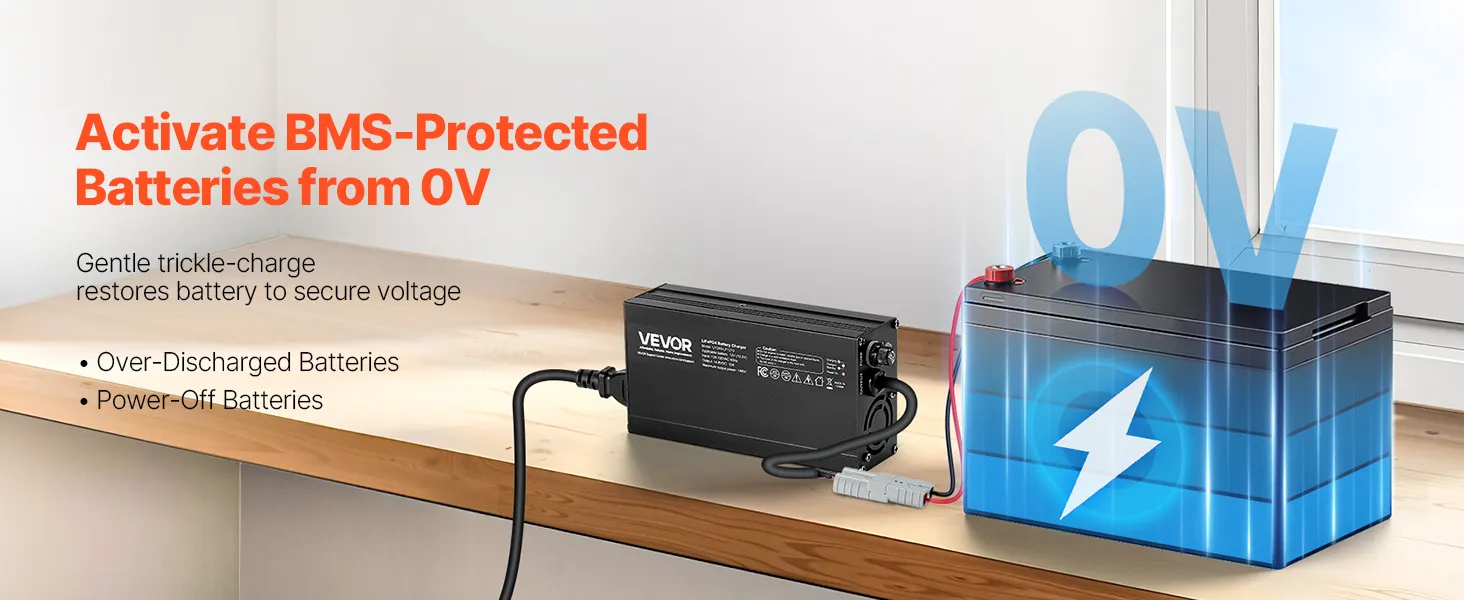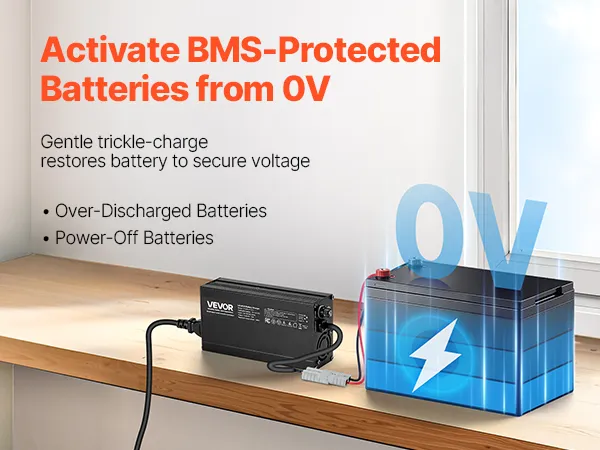 0V Secure Activation Function: No extra tools required! With the 0V activation feature, you can easily wake up batteries in BMS protection mode. It keeps battery damage from prolonged low voltage and efficiently charges low-voltage lithium batteries